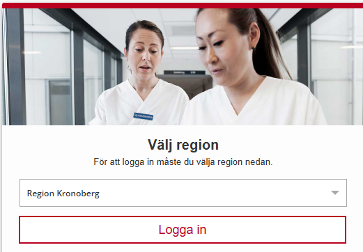 För att logga in välj Region Kronoberg och tryck på Logga in: